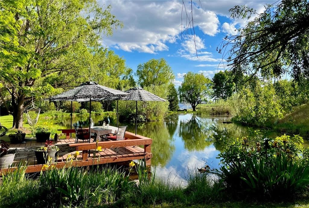 Escape to this Sunny Selah Sanctuary, on a shy 5 acre parcel w/ 2 private seasonal lakes that provide flowing water & a serene waterfront lifestyle (without waterfront taxes!). Senior Irrigation Rights. Relax & picnic on the dock at water’s edge, canoe to private island, exercise your animals, & enjoy life! Self-sustaining lifestyle if desired; fruit trees, nuts & berries, pasture & fully fenced “backyard” (roughly 2/3 of the property). Outbuildings include Greenhouse, Historic Cabin, 2-car Detached Garage, and an Artists-Dream Historic Barn! Stunning 1922 Craftsman-style home totally renovated 2003-2008. Spacious 3 Primary Bedroom Suites, 4th Bedroom (non-conforming). Great Room Design. Indoor-Outdoor spaces + an Enclosed Back Porch & much more.